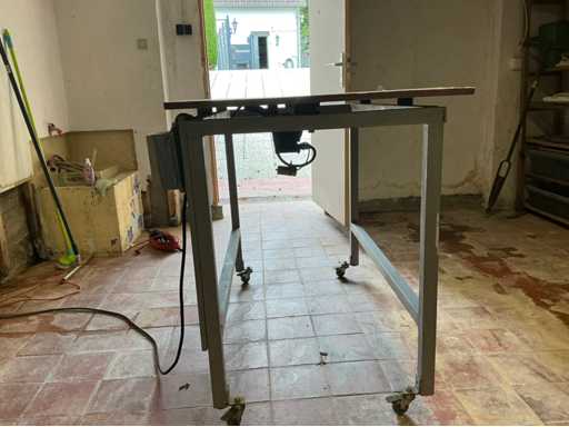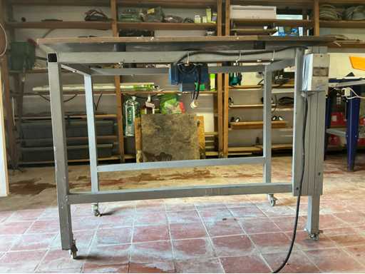 Proposée par un atelier professionnel : table vibrante robuste destinée à l’aération et au compactage de composés de coulée de plâtre, de béton ou de céramique dans des moules.