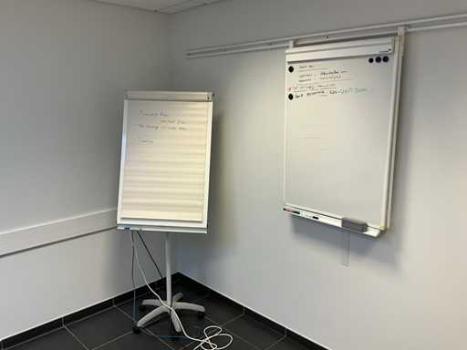 Tableau blanc LEGAMASTER sur rail avec longueur totale du rail : 360 cm, taille du tableau blanc : 75x110 cm + paperboard mobile LEGAMASTER