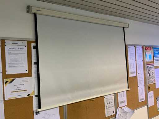 Dont 2x avec dimensions : 100x150cm, 3x avec dimensions : 90x120cm, complet avec écran de projection PROJECTA de largeur 189cm, mural