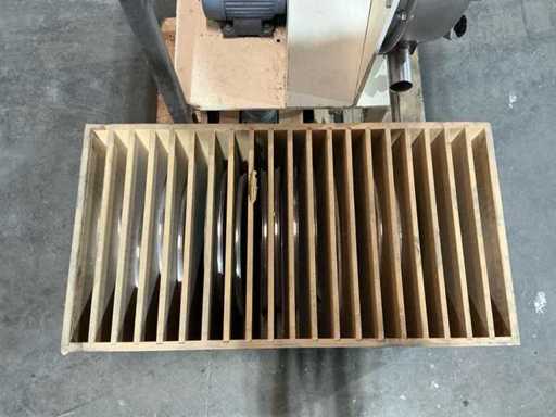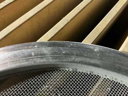 Comprend : 21 tamis, moteur 0,75 kW, connexion d’alimentation 100 mm, vidange 50 mm, connexion air comprimé avec régulateur de pression, interrupteur principal, armoire pour tamis de stockage, grillage de séparation, voir photos pour