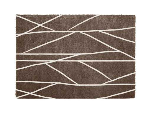 Tapis shaggy berbère lignes asymétriques - 160 x 230 cm - Marron et blanc