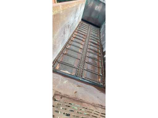 Système d’épandage à deux disques avec hérissons verticaux, tapis à chaînes renforcé.