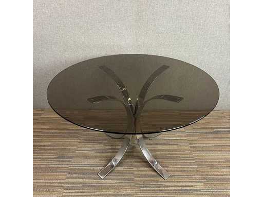 Table ronde TECNO T69, conçue par Osvaldo Borsani, équipée d’un plateau en verre et d’un pied central chromé. Élégant et fonctionnel, idéal pour les cantines, les salles de réunion ou les intérieurs design diamètre 100.