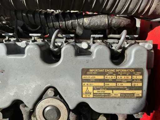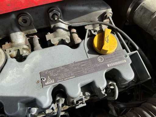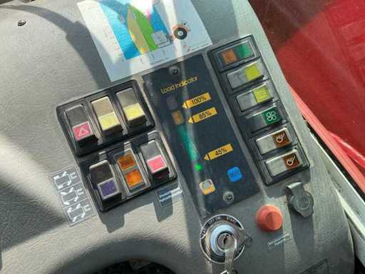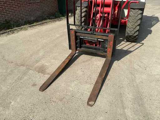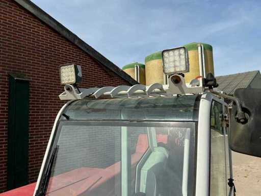 Équipé de : attelage rapide hydraulique, affût fourche, fourches 1200 mm, feux de travail LED, feu clignotant,