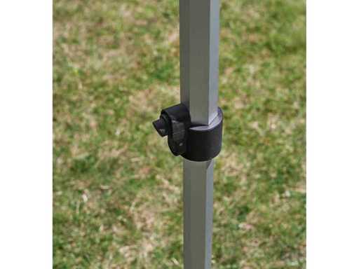 Ce kiosque élévateur en aluminium haut de gamme est parfait pour les événements, les fêtes et les salons professionnels, et il est facile à transporter grâce à sa légèreté. La tente peut être fermée avec les trois parois latérales incluses.