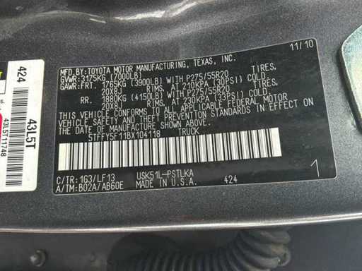 Toyota Tundra 5.7 V8 2011 Crew. Plat. Voiture voyageurs