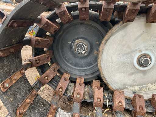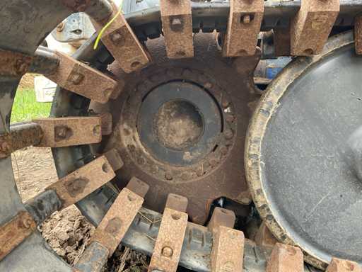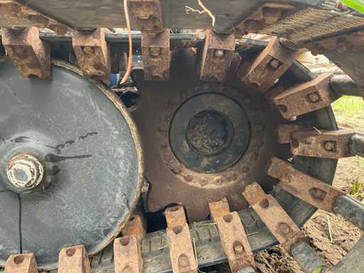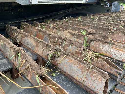 Consommation : 50 586 km, Largeur de voie : 1000 mm, Équipé de : tringlerie arrière à 3 points, coulisse avant (se rabattant à 5 150 mm), cabine pour trois personnes, climatisation, tendeur automatique de voie, affichage numérique, pièces détachées,