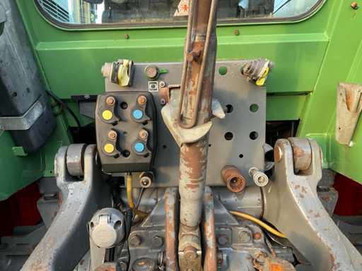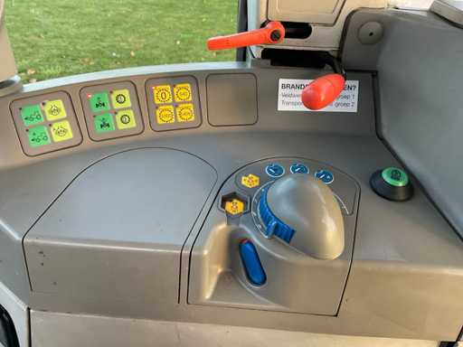 équipée de : tringlerie avant, essieu avant suspendu hydrauliquement, 2x soupapes hydrauliques à double action arrière, détecteur de charge, soupape de frein hydraulique, système d’air, raccord frein pneumatique, barre de traction inférieure Pitonfix avec direction, immatriculation hollandaise,