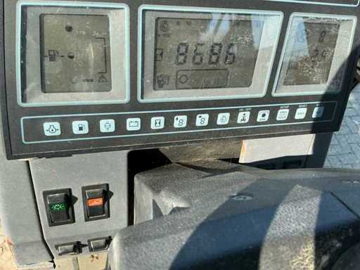 Équipé de : vitesse PTO 540/1000, chargeur frontal Mail eux mx 120 avec raccord hydraulique, 4 soupapes doubles à l’arrière, siège à suspension pneumatique, retour sans pression, puissance arrière, pitonfix sous le barre de remorquage, powershift 8, 2 groupes en haut et en bas. Diesel 6 cylindres de 7,6 litres