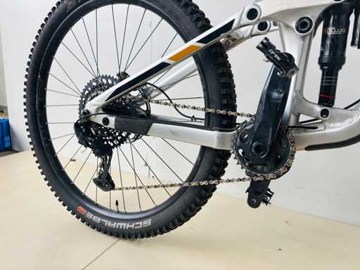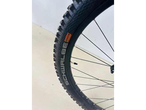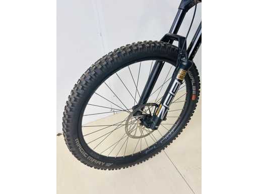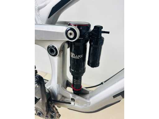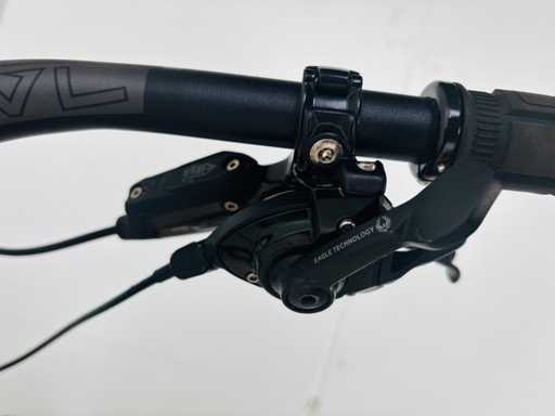suspension centrale SUPER DELUXE ULTIMATE - suspension avant ROCK SHOX ZEG ULTIMATE - Pneu SCHWALBE - guidon 80cm - 13 vitesses pignon centrale fixe - frein à disque SCRAM CODE R - poids total 14,8kg - shfter et dérailleur SRAM T GX - tube de selle hydrolique relevage automatique