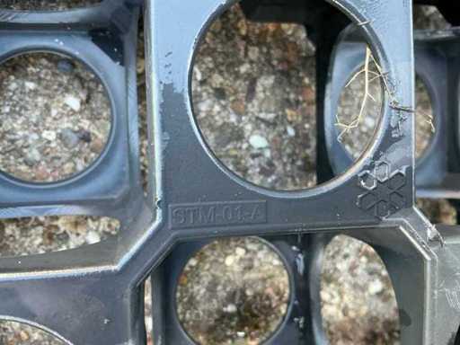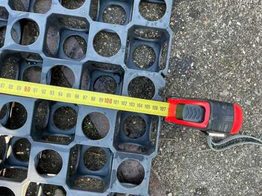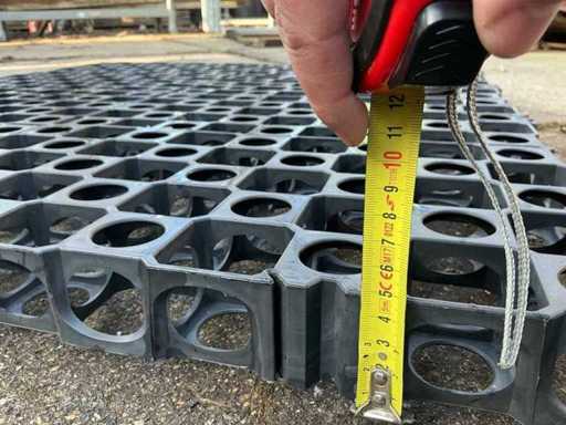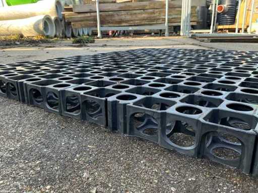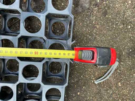 8 par rangée ; 45 rangées = environ 350 tuiles de gazon synthétique Atlantis
