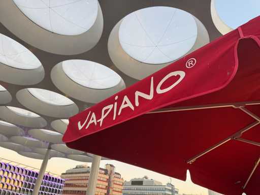 Équipée d’éclairage, y compris une base avec des carrelages. PRUDENCE! Un coin pend de travers. Le terrain est situé sur la terrasse sur le toit.