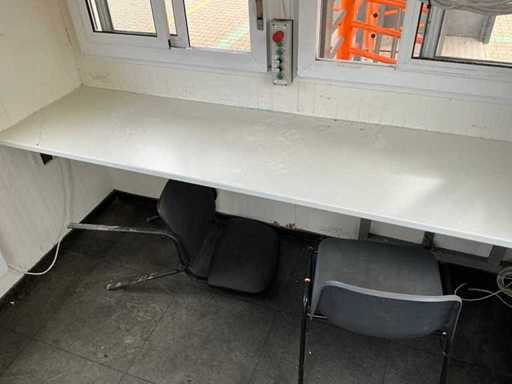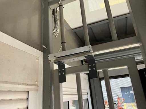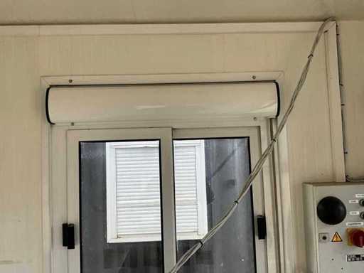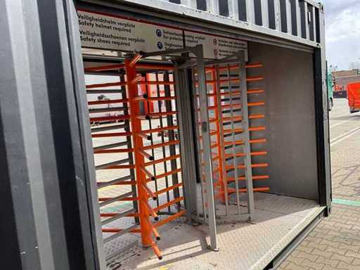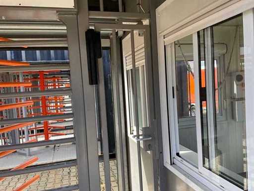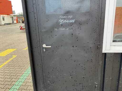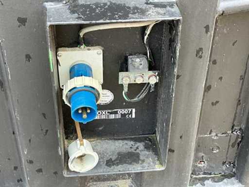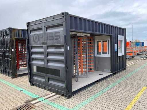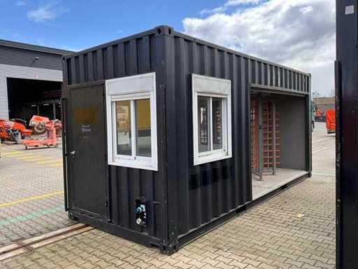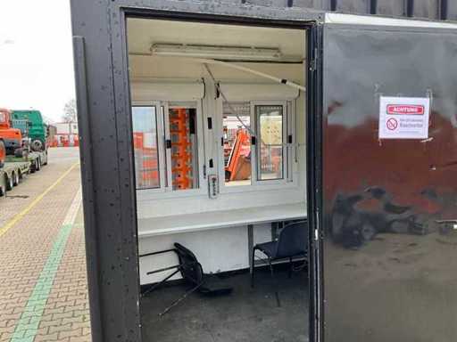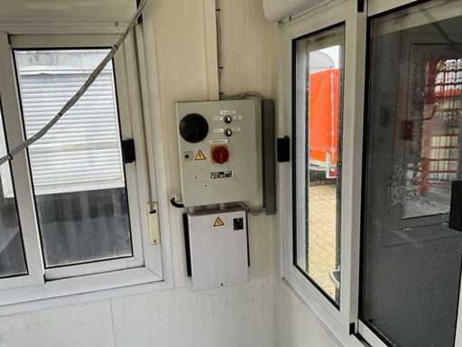 monté dans un conteneur en acier de 20 pieds ; équipée de deux volets latéraux longs complets ; équipé d’un éclairage ; 2 portes tournantes : salle technique à l’extrémité avec un boîtier électrique ; poêle ; des fenêtres avec volets ; connexion électrique 230 Volt ; les serrures torsadées ; fentes pour fourches élévateurs ; Cette unité peut être chargée sur place avec le chariot élévateur sur un camion « ouvert » ;