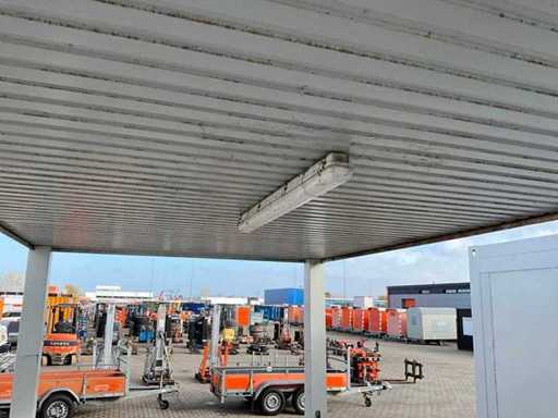 châssis en acier ; pas de murs ; connexion électrique ; l’éclairage ; les serrures torsadées ; l’acheteur doit s’occuper lui-même de son transport et de l’ouvrir du camion avec grue de chargement ;