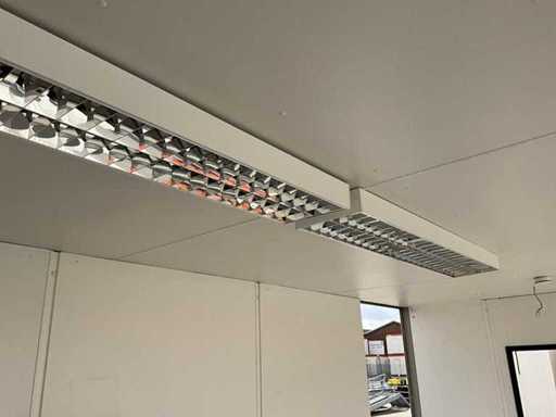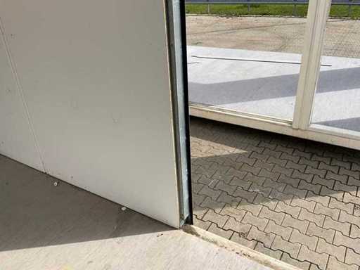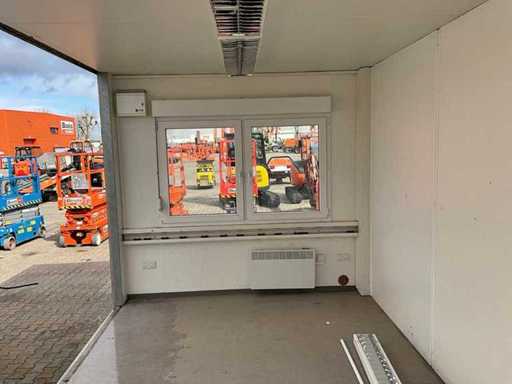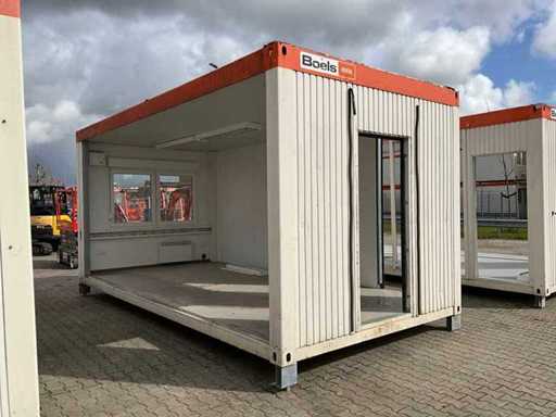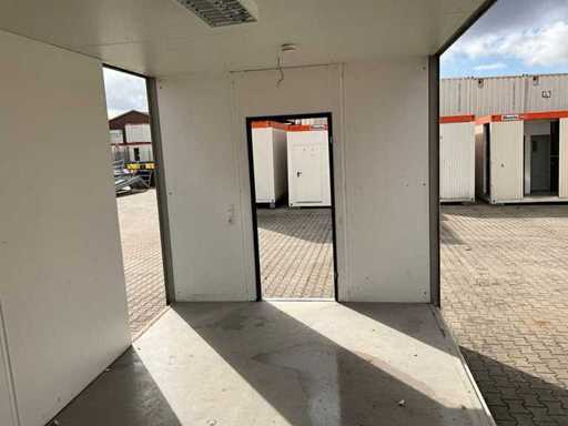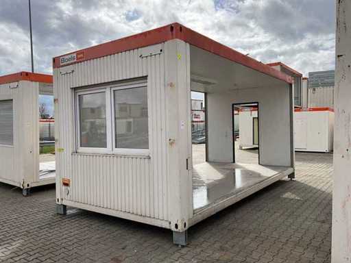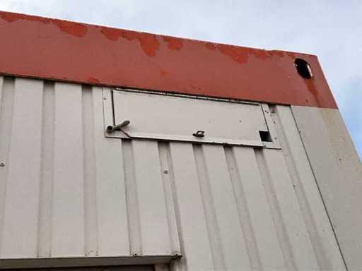 Châssis en acier ; 1x mur ouvert côté long ; Il manque une porte ; Il manque une section murale ; les serrures torsadées ; L’acheteur doit s’occuper lui-même de son transport et de l’ouvrir du camion avec grue de chargement