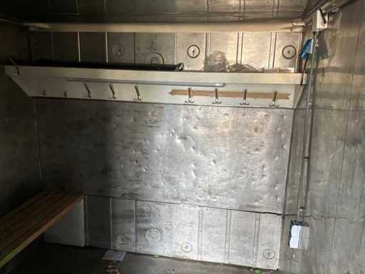 Équipé de : vestiaire, 2 lavabos, 2 urinoirs, 2 toilettes.