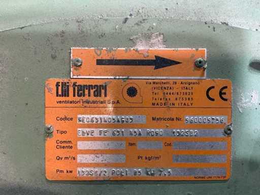 Équipé de : Ventilateur centrifuge Rucon Industrial adapté aux applications lourdes, type : FE 631-N4, tension : 380 V, fréquence : 50 Hz, courant : 14,7 A, puissance (P1) : 7,5 kW, vitesse : 2855 tr/min, IP55, classe d’isolation : F, débit d’air : ± 18 000 m³/heure, pression statique maximale : 6442 Pa, angle de la pale réglé : 40°, densité moyenne (S.m.) : 1,15 kg/m, connexion côté sud à l’intérieur 490x490, bride de sortie 160x120mm,