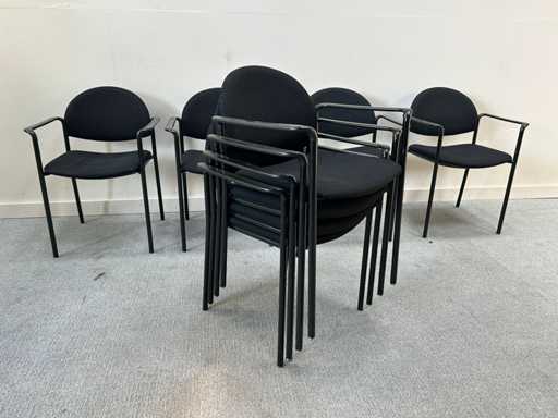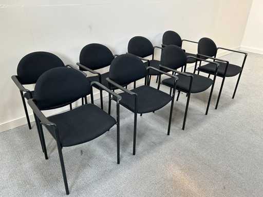 Un ensemble de 8 chaises visiteurs Versa empilables en noir. Avec des signes d’usure, l’état peut varier d’un article à l’autre.