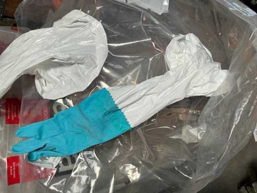 Environ 70x vêtements et 110x sac en amiante de 100x120 cm.
