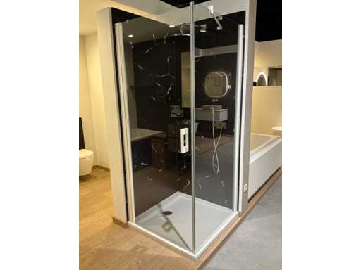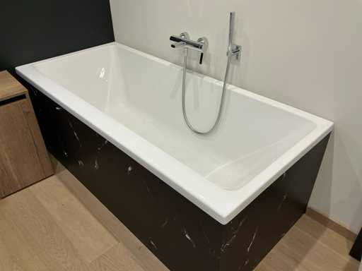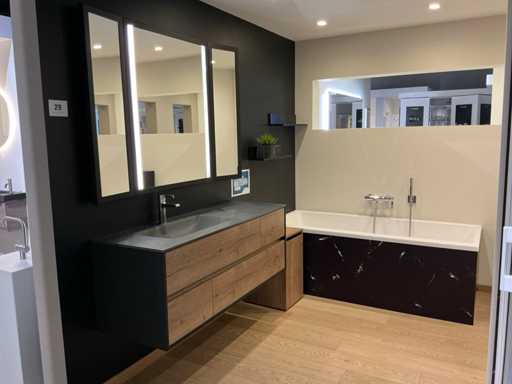 Boîte pleine ; baignoire VILLEROY&BOCH 1800x800x600mm, douche à l’italienne KERMI avec receveur de douche VILLEROY&BOCH 90x90cm, paroi latérale, porte de baignoire et de douche, WC suspendu DURAVIT ME, mobilier de salle de bain SANIJURA TRIPTYCH 140x50x50cm, panier à linge softclose 34x40x62cm et panneau miroir led 140x100c