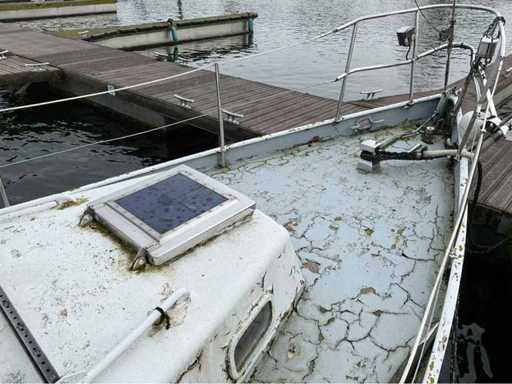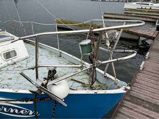 Voilier en acier. Équipé de : mât en bois, grand-voile avec bâche, 1 foc supplémentaire, ancre en acier inoxydable avec chaîne d’ancre, rampe en acier inoxydable, ailes de défense, feux de navigation, cabine avec bancs et couchette, moteur diesel intérieur 1 cylindre (fonctionnement inconnu), petit capot d’éclaboussure, gréement, échelle de nage et gouvernail. !! SAUF pour l’amarrage !!
