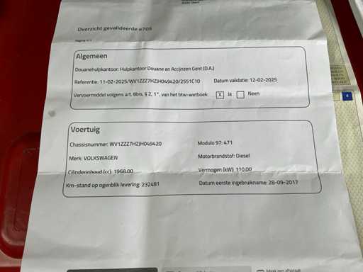 Une demande de livraison peut être obtenue via http://www.auctionlogistics.nl