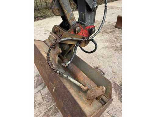 Équipé de : attelage rapide ; un godet basculant hydraulique ; Fonction 1DW proportionnelle, fonction marteau, pompe diesel externe, châssis environ 80 %, éclairage LED, climatisation, radio, essence automatique