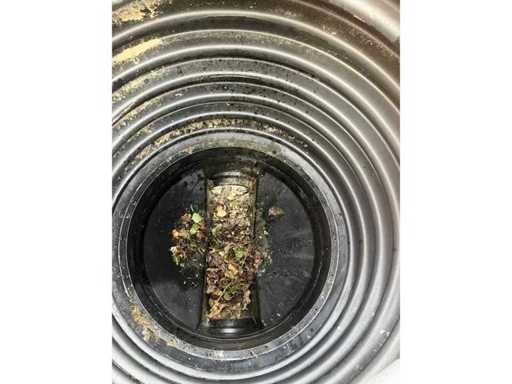 Entrée de drain de 200 cm de hauteur sur une plaque de connexion de drain de 100 cm x 100 cm, cœur de 80 Ø80 à 42 cm depuis le tuyau de drainage Oc 50 mm de cœur à 169 cm du fond