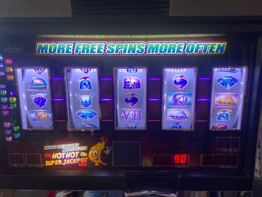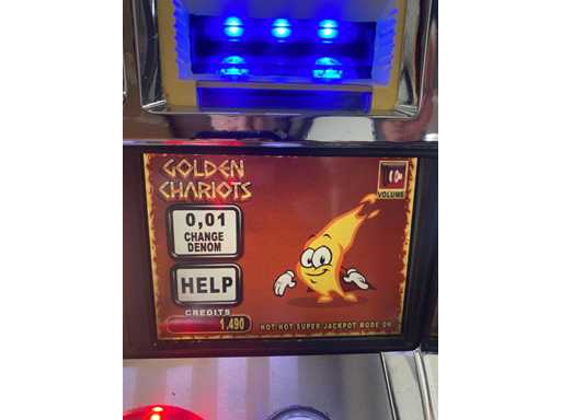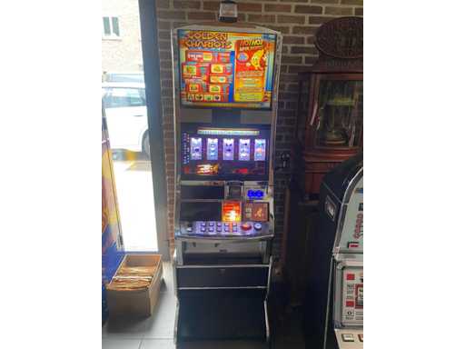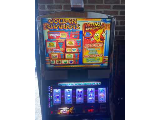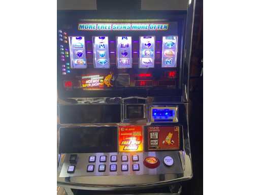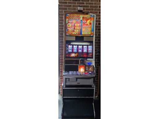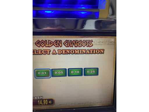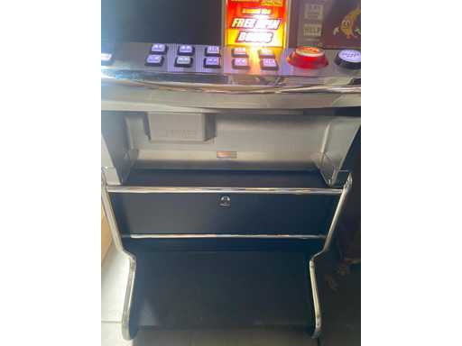 Machine à sous de casino avec commandes à boutons et poignée, accepte les billets euro