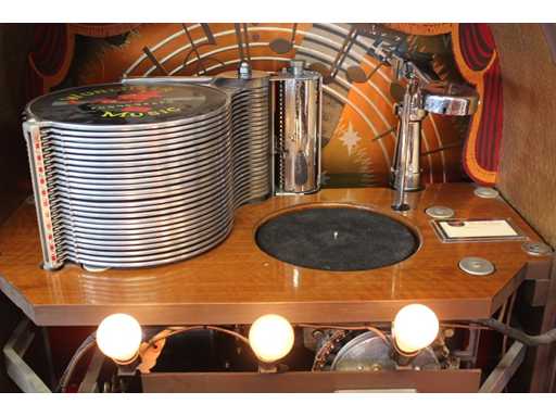 24 sélections, singles 78 tours (inclus), pilastres rotatifs et décolorants, tubes à bulles, restaurés, design Paul Fuller, bien fonctionnant