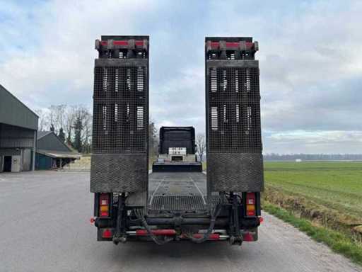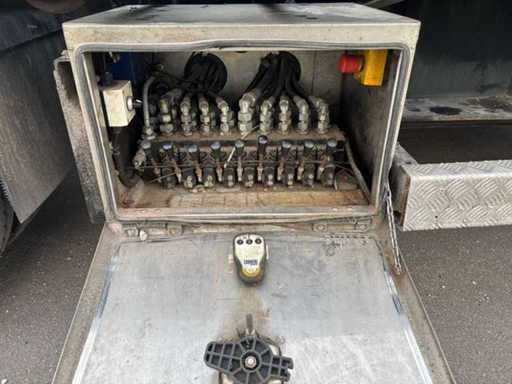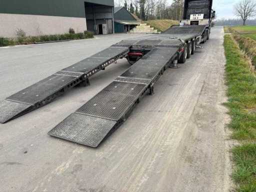 Châssis Tridec, essieux directionnels, jambes de support hydrauliques, réservoir diesel avec système de remplissage, rampes réglables en largeur hydraulique, éclairage LED. Armoires sous le comptoir, tout fonctionne, certificat d’immatriculation allemand. excl. Camion