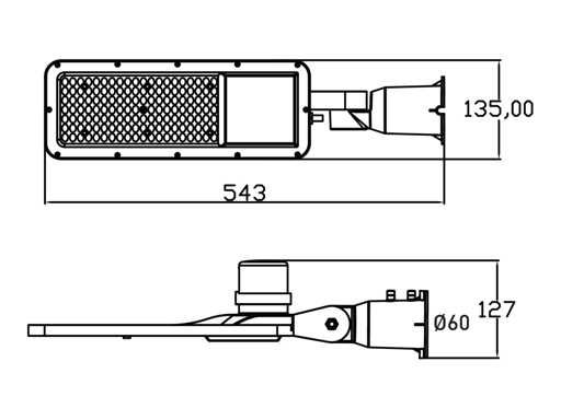 lichtstroom 10200 lumen, lichtkleur daglicht 5000K, afdichting IP65, met fotocel sensor dag uit/nacht aan, stralingshoek 100°, product kleur zand grijs, met lens, kantelbaar, afm. 543 x 135 x 127 mm, materiaal aluminium en PC lens, bevestigingsset niet inclusief, levensduur 25.000 uren, met lineer driver, voltage 220-240V, SKU 1180