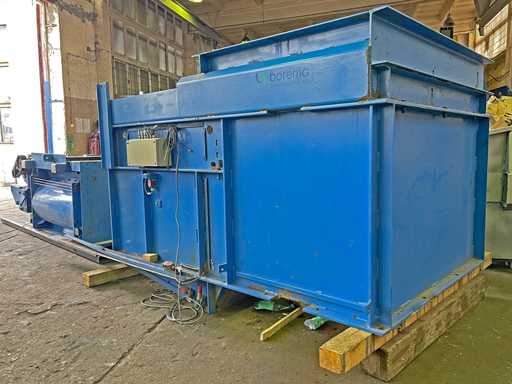 We offer you a used PET bottle crusher of the manufacturer BOREMA, type R-1200 F, year of construction 2013, for residual emptying, deaeration and pre-compaction of the fed PET bottles, from 0.3 up to 2.5 l content. The machine has a chassis and can be moved into and out of the feed chute of your baler. The machine has a throughput capacity of approx. 85,000 bottles/h, corresponding to approx. 3t/h.