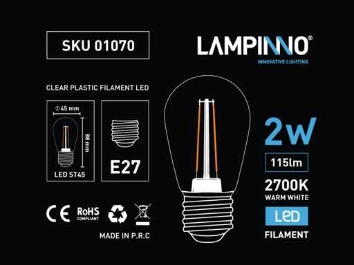 2W 2700K ST45 Filament Shockproof LED Bulb (100x)