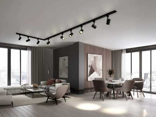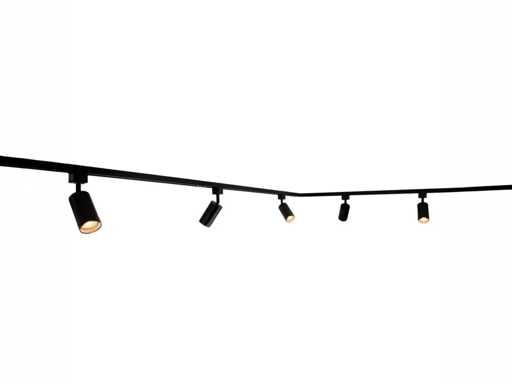afdichting IP20, 1 stuk 100cm en 1 stuk 200cm rail, materiaal aluminium, bevestiging inclusief, 220-240V, 1 stuk door verbinder inclusief, product kleur zand zwart, 9 stuk railspots GU10 armatuur afm. Ø 55 x 102mm draaibaar 350° en kantelbaar 90° materiaal aluminum kop en kunstof basis, bulb niet inbegrepen, de rail kan eenvoudig op de gewenste lengte worden gezaagd, geschikt voor binnen, SKU 1088 SKU 1084 SKU 1086 SKU 1121