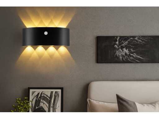10 x LED-wandlampen met bewegingssensor – Model SW-2310-4 – Vermogen 8W – Uitgerust met COB LED's met een lichtstroom van 700 lumen – Kleurtemperatuur 3500K (warm wit), ideaal voor uitnodigende verlichting – AlRobuust en modern zwart uminium – Afmetingen: 220 × 80 × 44 mm – IP54 bescherming, water- en stofbestendig – Voeding: 220-240V (50/60Hz) – Geschatte levensduur van 30.000 uur – Inclusief lamp en meegeleverde montageset – Geschikt voor eenBinnen- en buiteninstallatie: gevels, tuinen, terrassen, entrees, parkeergarages, gangen.