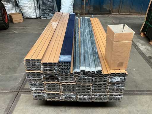 Bestaande uit totaal 120 composiet schutting planken van 182 cm, 10 aluminium onderprofielen, 10 aluminium bovenprofielen, 40 verstevigingsprofielen, 10 montagesets, 11 aluminium tuinpalen 300 cm en 11 afdekkappen; ongebruikt in verpakking.