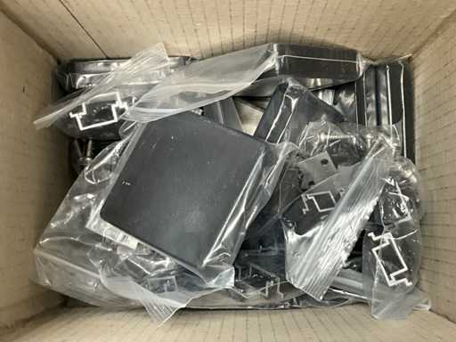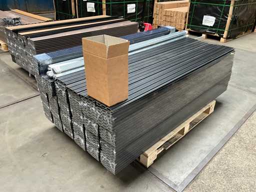 Bestaande uit totaal 120 composiet schutting planken 182 cm, 10 aluminium onderprofielen, 10 aluminium bovenprofielen, 40 verstevigingsprofielen, 10 montagesets, 11 aluminium tuinpalen 300 cm en 11 afdekkappen; ongebruikt in verpakking. Goed voor het opbouwen van 10 schuttingen van +/- 180 cm hoogte en totaal 18,77 meter lengte.