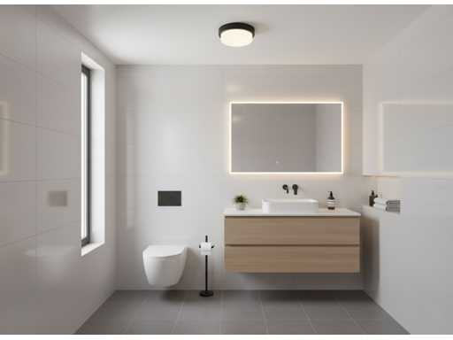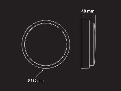 lichtstroom 840 lumen, lichtkleur neutraal wit 4000K, afdichting IP54, product kleur zwart wit, afm Ø 190 x 48mm, materiaal PC en ABS, bevestigingsset inclusief, levensduur 25.000 uren, voltage 220-240V, stralingshoek 120°, flicker free, geschikt voor wand en plafond, SKU 00608