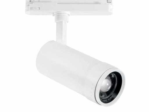 Professionele rail spots geschikt voor verlichting van een kantoor, ontvangstruimten, werkkamers, studeerkamers of de showroom. De spots zijn snel te plaatsen en te gebruiken met ieder 3 fase rail kavel in deze veiling. De spots bieden veel flexibiliteit daar de breedte van de verlichting zeer nauwkeurig kan worden afgesteld middels een zoom ring. De spots zijn kantel en roteerbaar, voorzien van een 30 watt power ledlichtbron. Lichtkleur 4000K neutraal wit, 1175 lumen Type: 8031414894291 Dit betreft een volledig nieuw product. Lotwaarde €4014,-