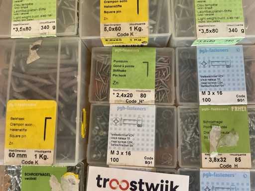 Metaalschroeven; balkhaak; schroefnagel; puntduim, stormnagel ronde kop