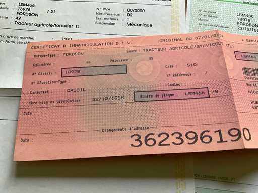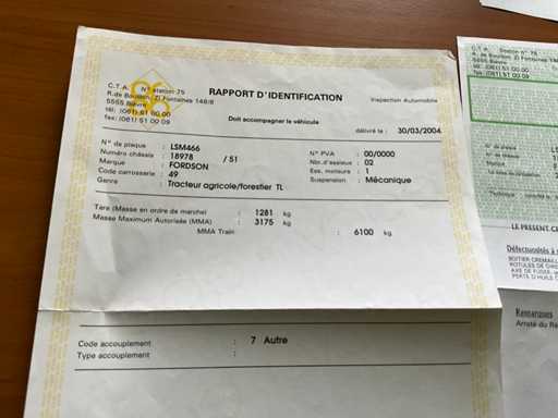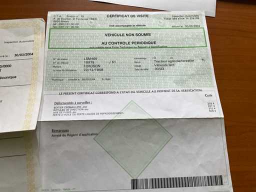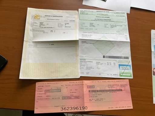 Diesel, start en rijdt, aanwezige boorddocumenten: inschrijvingsbewijs, keuringsbewijs, identificatieverslag