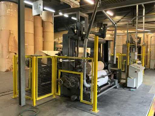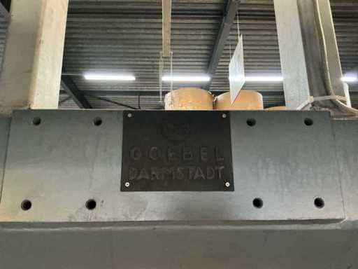 Voorzien van: Lichtscherm, Thor bedieningskast, veiligheid hekken, 3 Ton Hitachi lier incl stalen t profiel balken frame, voetbediening, De Goebel Darmstadt U7M-1600 (bouwjaar 1966) is een zware industriële papierverwerkingsmachine met een werk-/rolbreedte van ca. 1.600 mm, mechanische en hydraulische aandrijving, elektrische motorinstallatie, rollenopname voor grote papierrollen, beveiligde werkzones, een massieve gietstalen constructie, afmetingen van ongeveer 6–7 m lang, 3 m breed en 3–3,6 m hoog.