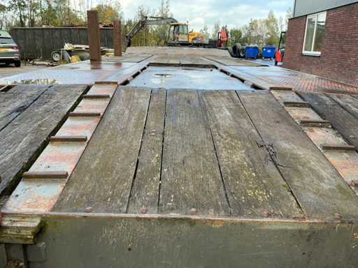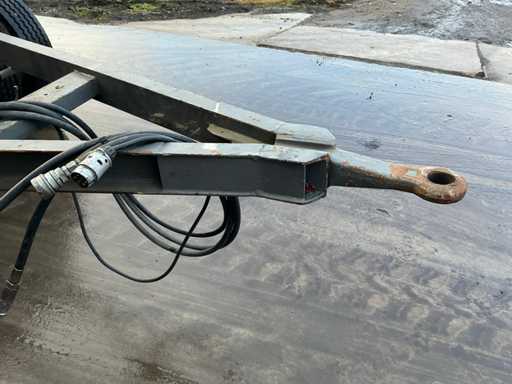 Voorzien van: hydraulisch geremd, remmen zijn matig, hydraulische oprijplaten, verlichting, opbergruimte, trekoog, landbouwvoertuig