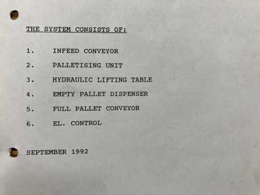 Palletiseerder DAN MK 11, Professioneel gedemonteerd ivm bedrijfsverhuizing, Documentatie installatie aanwezig, Volle pallethoogte te palletiseren pallet: 1100 mm