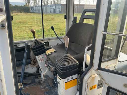 Voorzien van 3 diverse graafbakken * max hefgewicht circa 1500 kilo * voorzien van gesloten cabine * voorzien van werkende werkverlichting