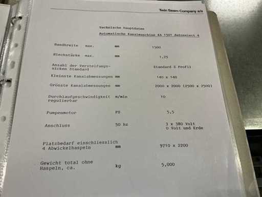 1995 Twin Seam KA 1501 A4 Kanaalvormmachine