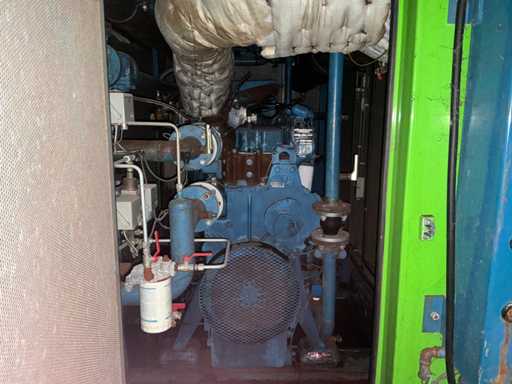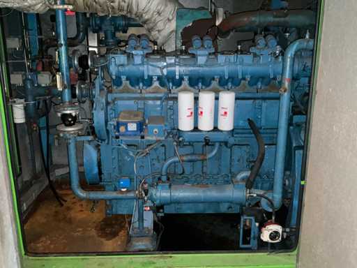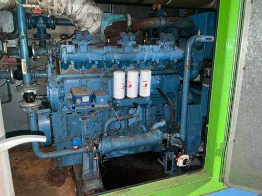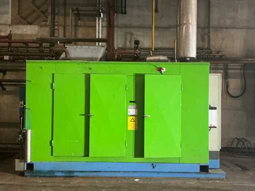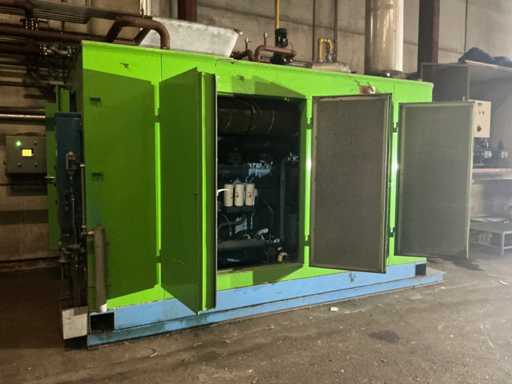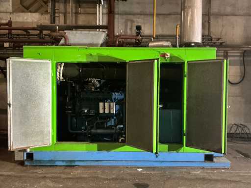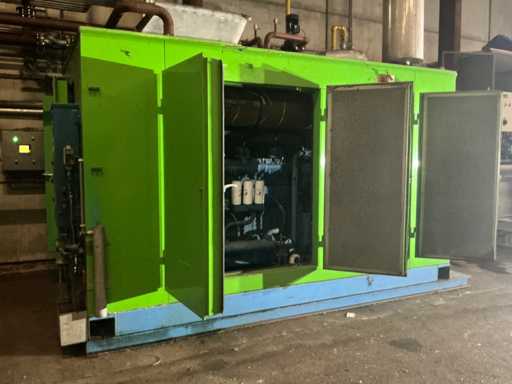 Thermisch vermogen: 318kW, elektrisch vermogen: 222kW. Voorzien van externe Helpman koeler.