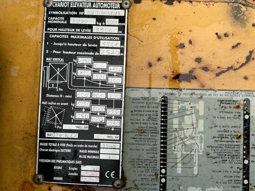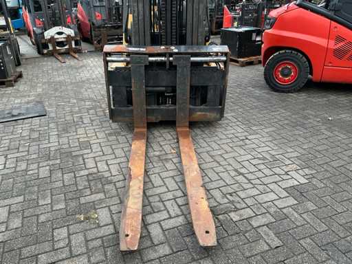 Voorzien van: triplex mast, zware vorken 2000mm, volrubber banden, gastank, verstelbare stuurkolom, motortype PSI 4X, motorvermogen 78 kW, meters motortemperatuur, urenteller, storingsindicator, transmissieolietemperatuur, laag remvloeistofpeil, motoroliedruk, dynamolading en luchtfilteronderhoud, accumulator in het remsysteem.