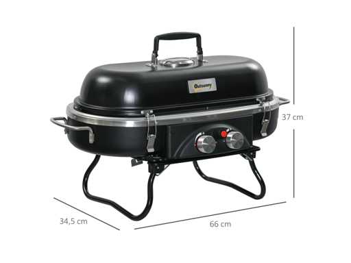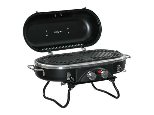 2,34 kW opvouwbare gasgrill met 2 roestvrijstalen branders